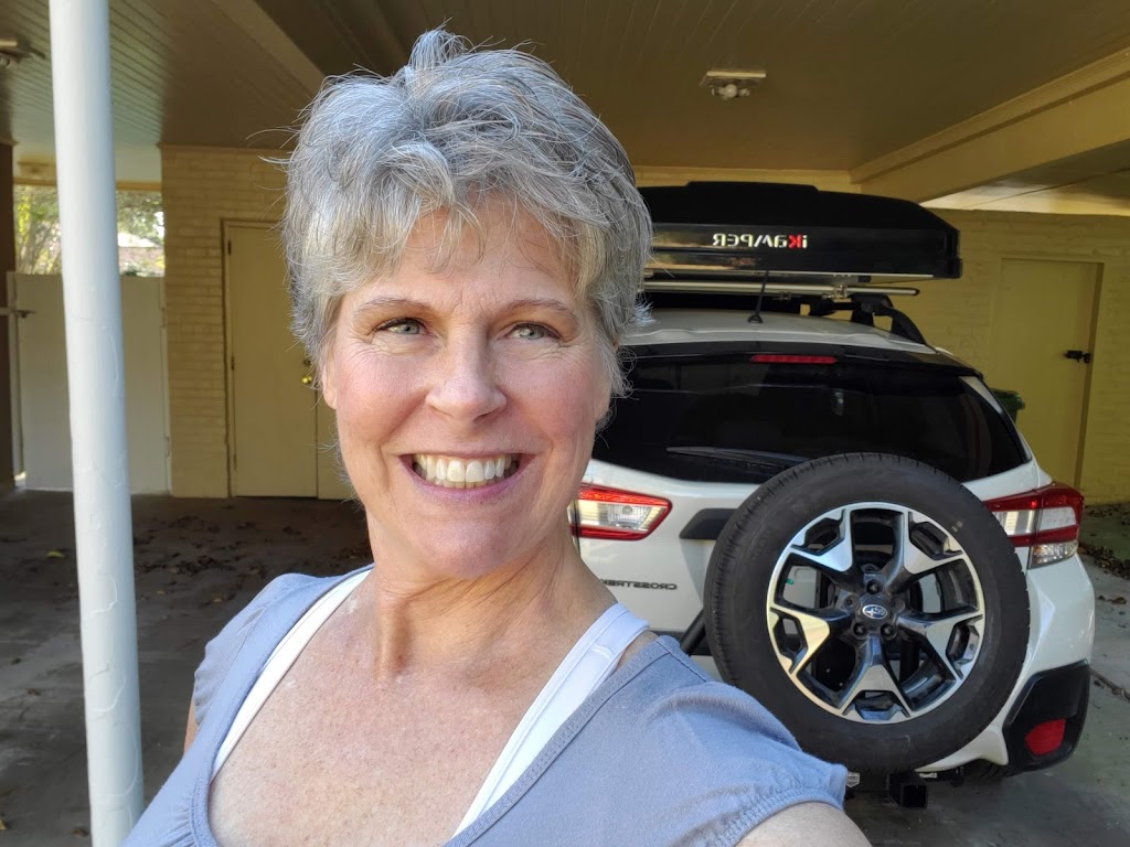 At daybreak I was anxious to see how my tent fared in the weather. To my delight it was dry and cozy. However, what I had not thought about was the terrain. We drove in on dry dirt. That dirt had become thick, mucky clay by the morning. All over Ella, all over my shoes and our gear, all over my tires. Once the car was loaded, I did my valiant best to extract it from the muddy campsite. Thank goodness for Subaru’s all-wheel drive. Again, I thought about the call that I might have to make to roadside assistance and the spotty cell service that may or may not make that call possible. I was successful after a few fishtails in the mud. We were back on the road, ready to stop at my sister’s again in TX on the way back. We had another great, refreshing stay with her and got back on the road for the final leg of the journey.